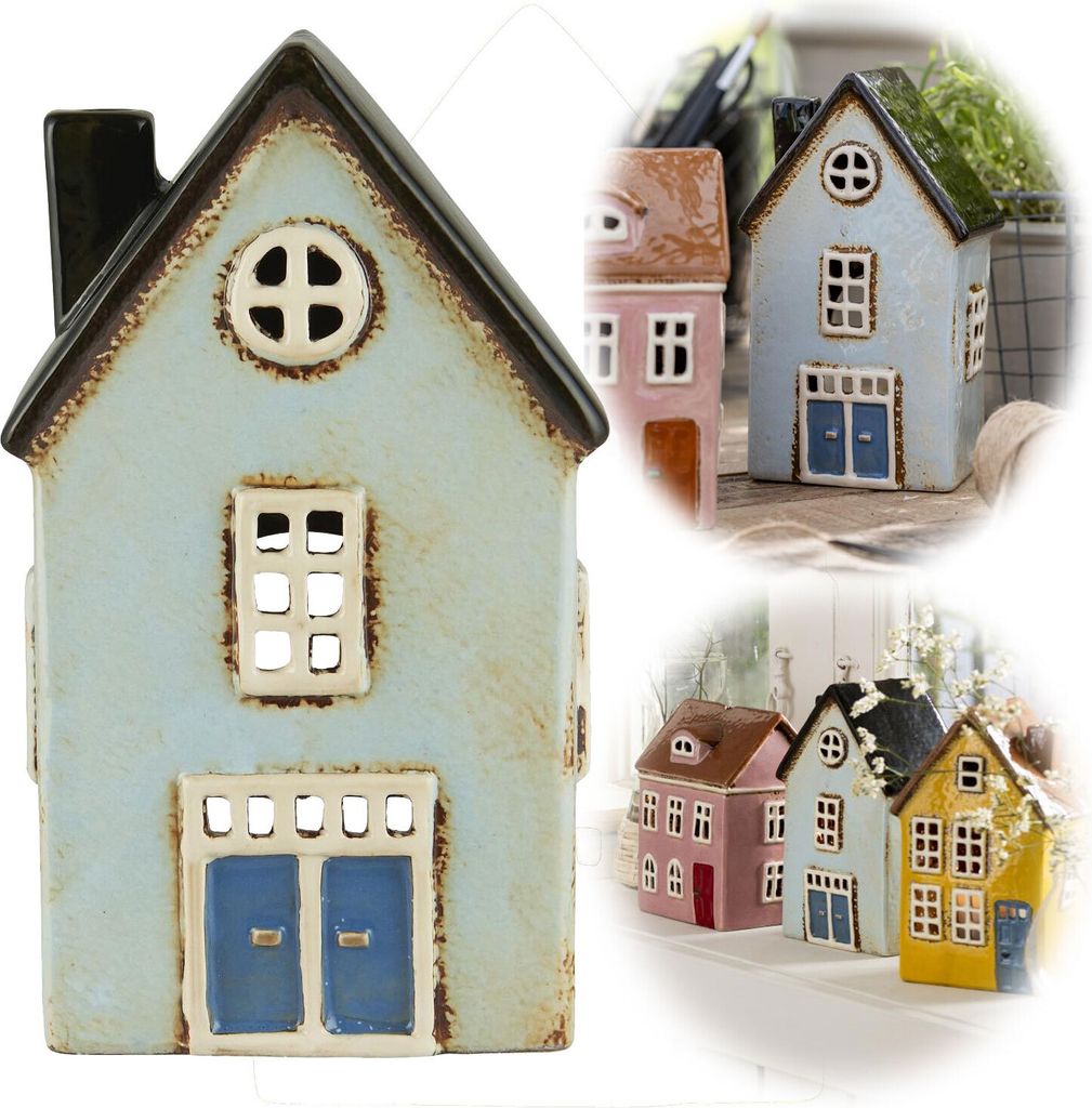 LS-LebenStil Teelichthaus Lichterhaus Nyhavn 19cm Blau Keramik Fachwerkhaus Teelichthalter Windlicht Kerzenständer Wohnzimmer, Fensterbank