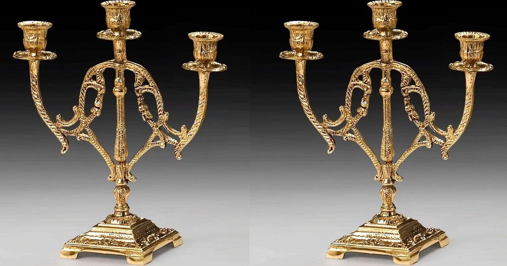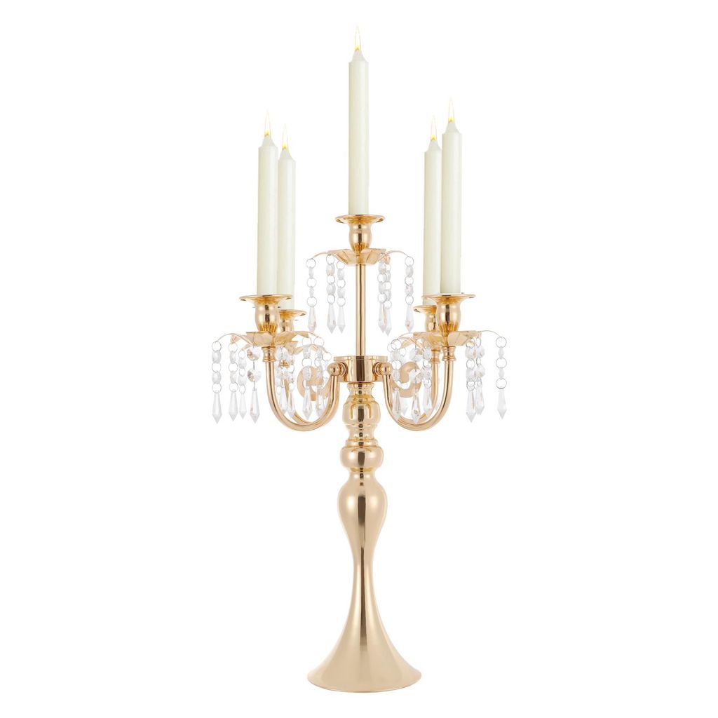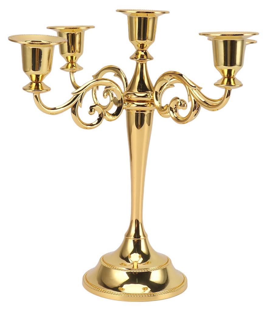 5-armiger Kerzenständer aus Eisen, Retro-dekoratives Kerzen-Mittelstück für Zuhause, Kirche, Gold