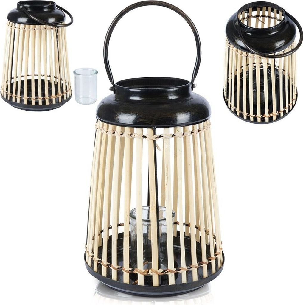 Laterne Gartenlampe Gartenleuchte Kerzenhalter Kerzenständer aus Bambus 33 cm