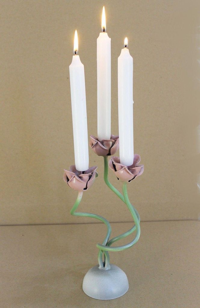 Kerzenhalter Rose Kerzenständer aus Metall 27 cm für 3 Kerzen Kerzenleuchter