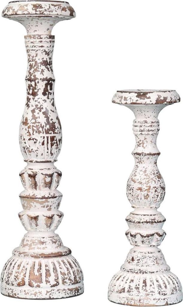 2er Set Kerzenhalter Kerzenständer Säule Ständer Dekosäule Dekoration Klein und Mittel Weiß Model 2