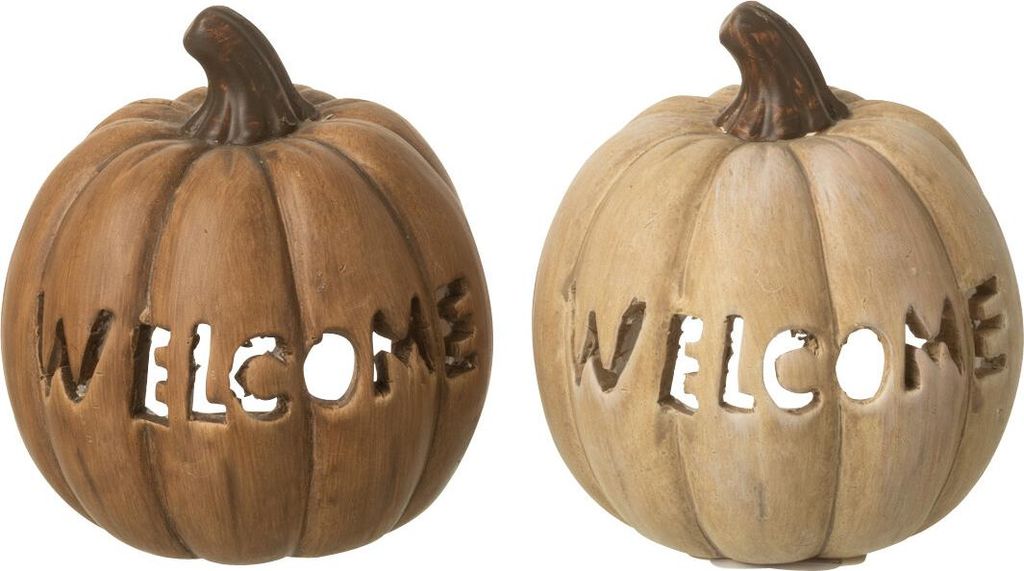 J-Line Kerzenständer Kürbis Welcome Ton Karamell Small 2 Sortiert