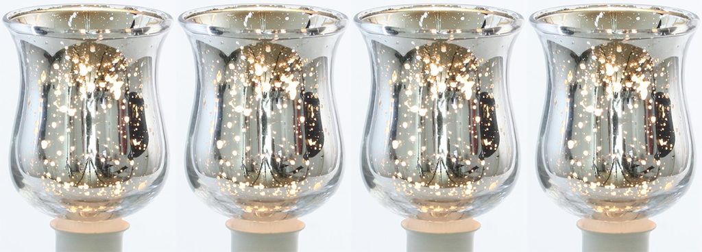4x Teelichtaufsatz silber Glasaufsatz für Kerzenleuchter Kerzenständer Glas Adventskranz Teelichthalter Stabkerzenhalter Weihnachten Kerzenpick 6cm