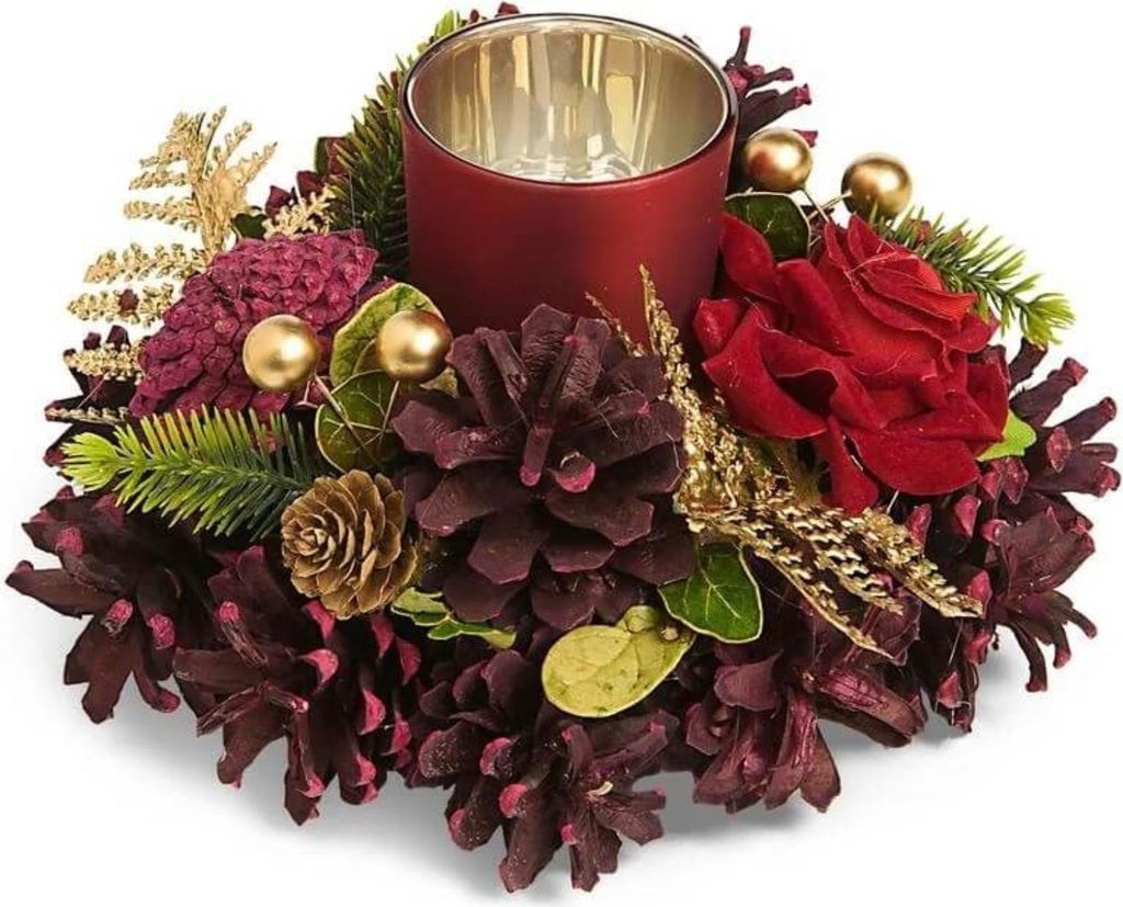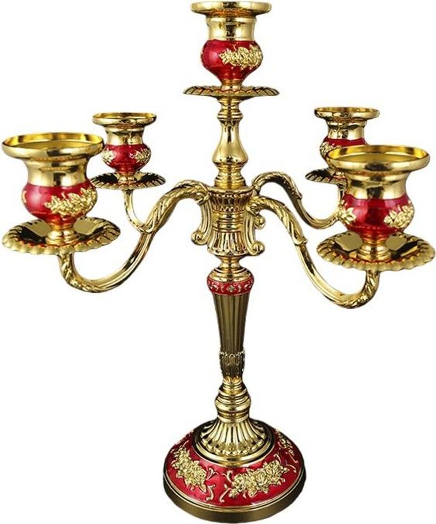 INF Vintage Kerzenständer aus Zinklegierung - Antikes Deko-Mittelstück für Zuhause Rot+Gold
