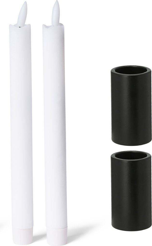Novaliv 2x Stabkerzenhalter magnetisch SCHWARZ 2,8x5cm Kerzenständer Magnet mit LED-Stabkerzen elektrisch Flackereffekt Premium Echtwachskerze Ker...