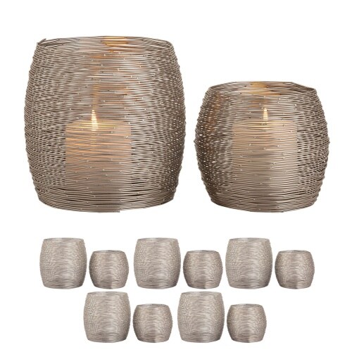 Windlicht Set 2-teilig Kerzenhalter Teelichthalter Loft silber Kerzenständer