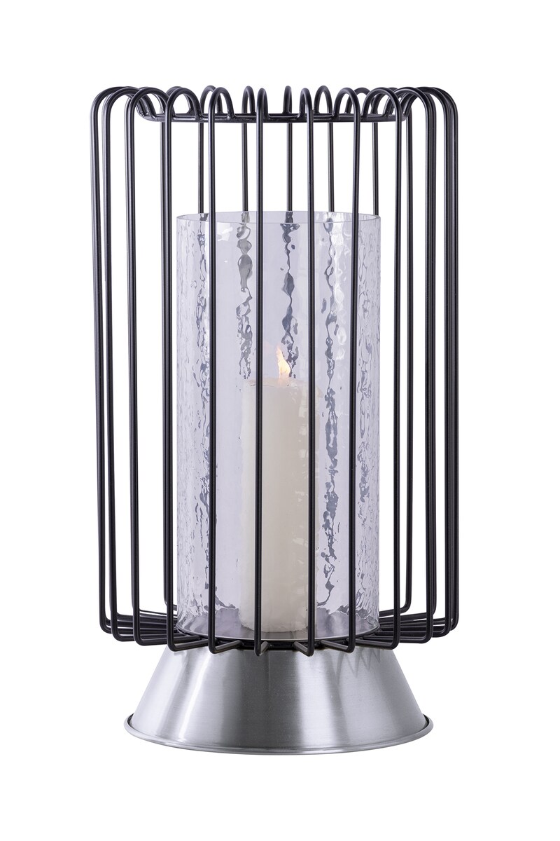 Qiyano Windlicht Kerzenständer aus Metall und Glas in Schwarz Silber, ca.31 cm hoch