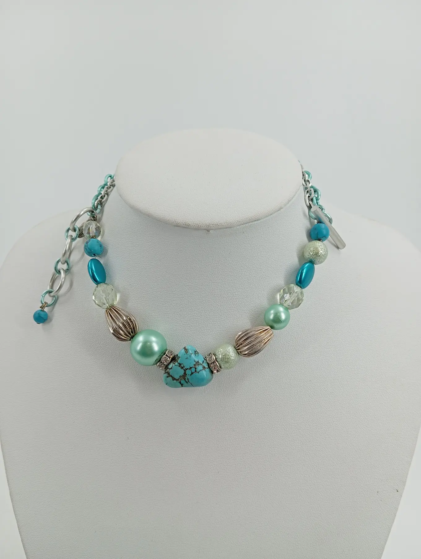 MARKENLOS Viva Diva Halskette Türkis Perlen Strass Statement Kette Damen Modeschmuck