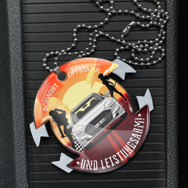 Auto Spiegel Anhänger - Personalisierte Kette mit Modell und Kennzeichen. Das ideale Geschenk für Papa und Auto-Enthusiasten. - auto4style