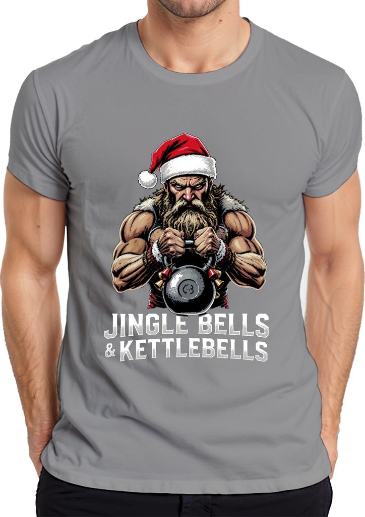 Jingle Bells Kettlebells Weihnachtsmann Krafttraining Geschenk Herren T-Shirt, Grau, L