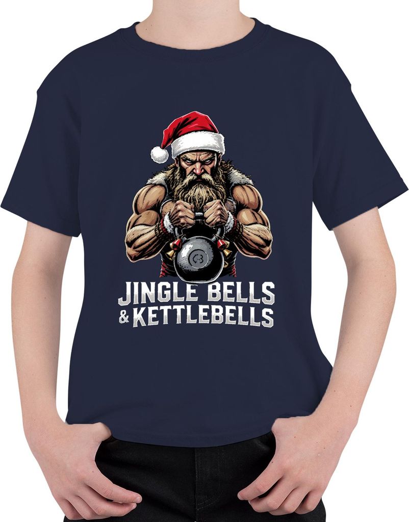 Jingle Bells Kettlebells Weihnachtsmann Krafttraining Geschenk Uni Kinder T-Shirt, Navy, 140
