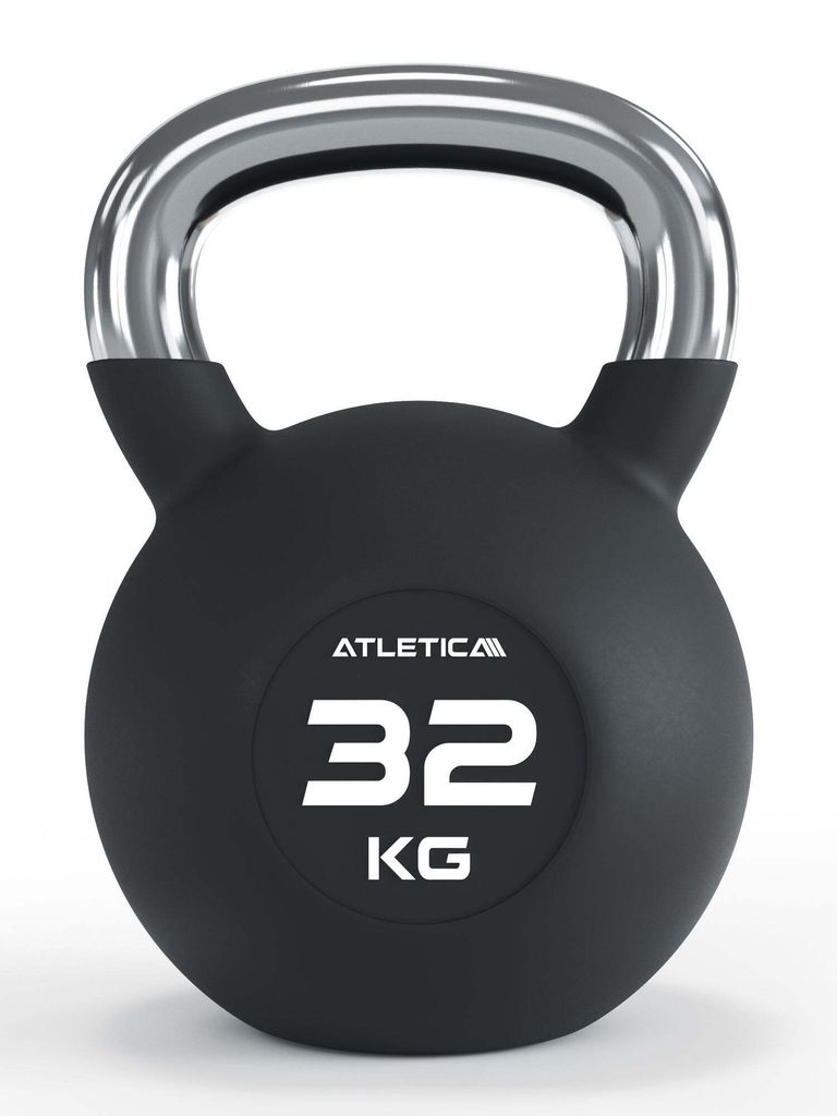 ATLETICA Kettlebells | 32 kg Einzelverkauf | Gummierte Kugelhantel mit Chromgriff | Hochwertige Stahllegierung | Studioqualität