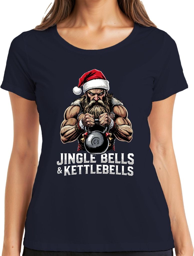 Jingle Bells Kettlebells Weihnachtsmann Krafttraining Geschenk Damen T-Shirt, Navy, XL