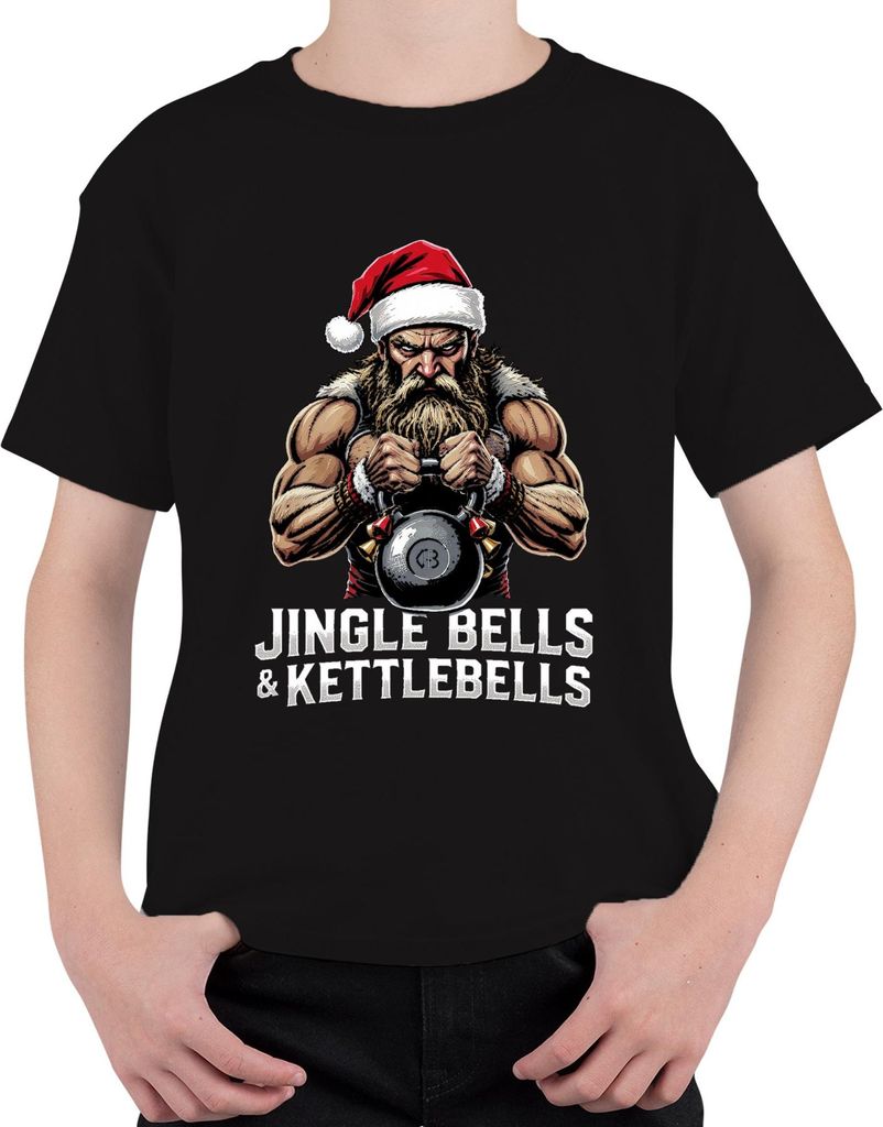 Jingle Bells Kettlebells Weihnachtsmann Krafttraining Geschenk Uni Kinder T-Shirt, Schwarz, 116
