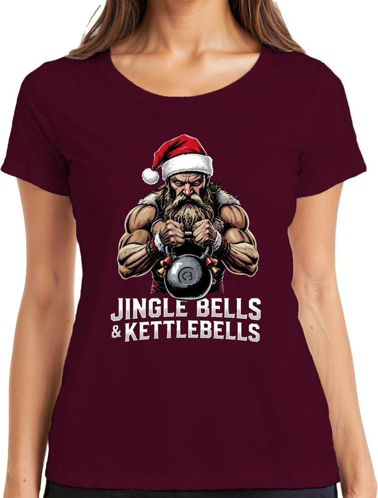 Jingle Bells Kettlebells Weihnachtsmann Krafttraining Geschenk Damen T-Shirt, Burgundy, S