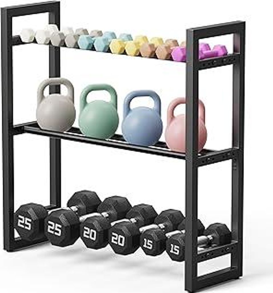 Pickpiff Verstellbarer Dreistöckiger Hantelständer – Gewichtslagerständer für Hanteln, Kettlebells und mehr – Platzsparender Hausgym-Organi...