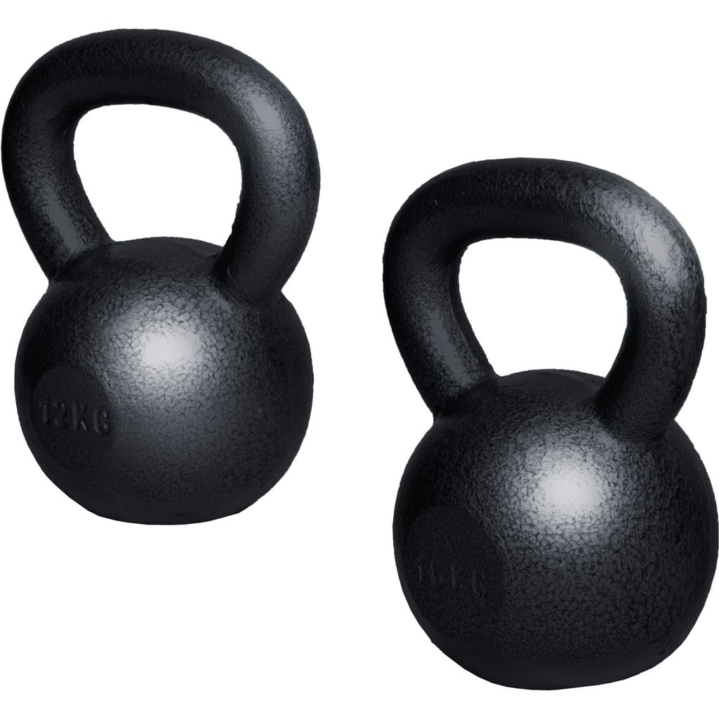 GORILLA SPORTS Kettlebell - 28kg Set, 12kg + 16kg Gewichte, Gusseisen, Bodenschonend, Schwarz - Kugelhantel, Schwunghantel, Kugelgewicht, Rundgew...
