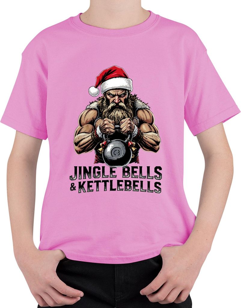 Jingle Bells Kettlebells Weihnachtsmann Krafttraining Geschenk Uni Kinder T-Shirt, Pink, 140