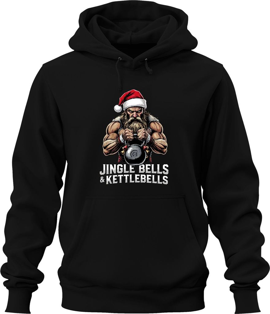 Jingle Bells Kettlebells Weihnachtsmann Krafttraining Geschenk Uni Hoodie Kapuzenpullover, Schwarz, L