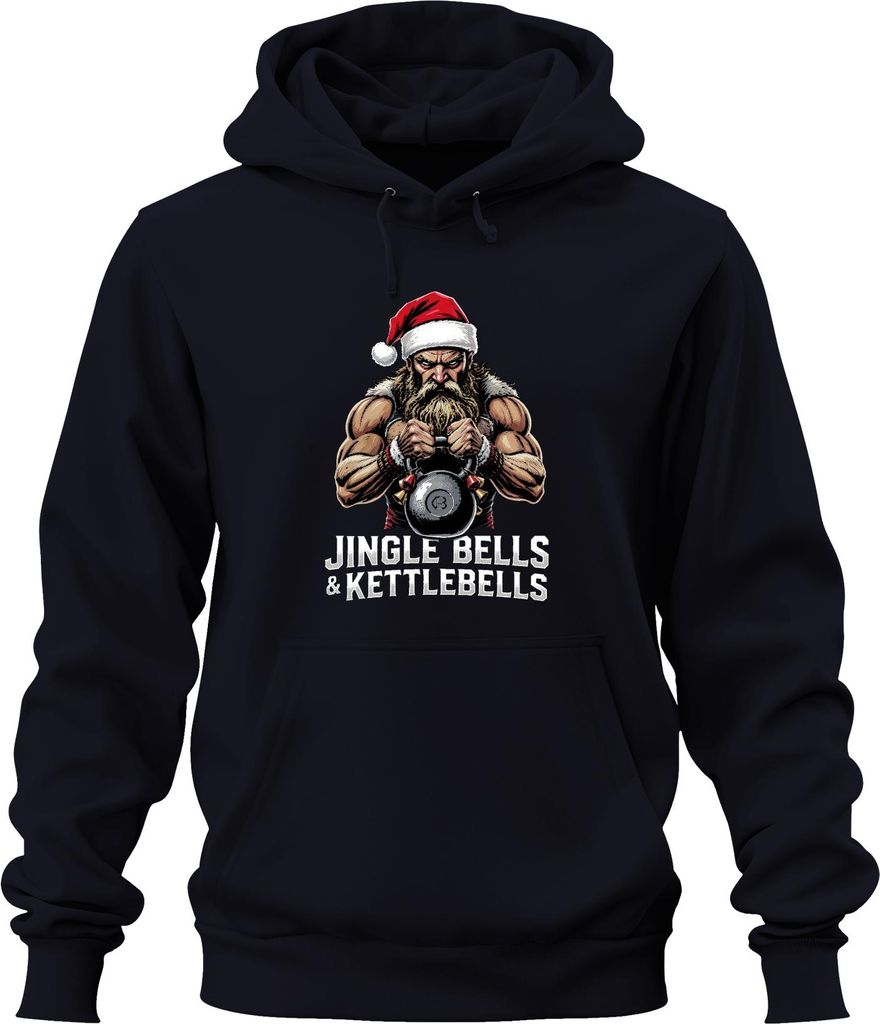Jingle Bells Kettlebells Weihnachtsmann Krafttraining Geschenk Uni Hoodie Kapuzenpullover, Navy, XXL
