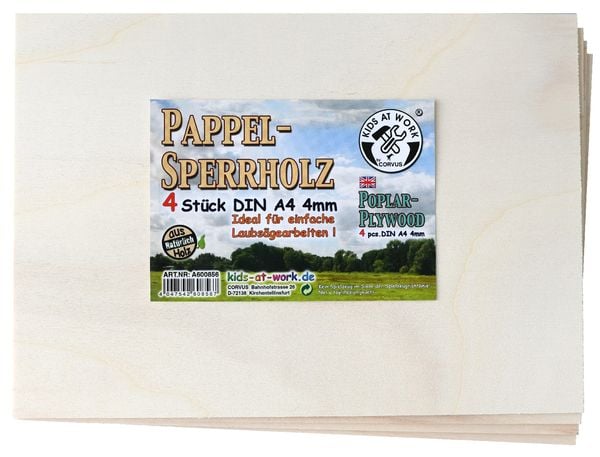 Corvus A600856 - Kids-at-work, Pappel-Sperrholz DIN A4 4er-Set, Laubsägezubehör