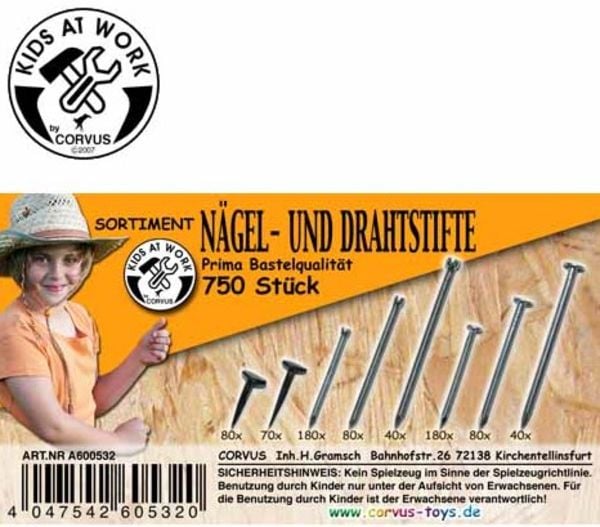 Kids at work: Sortiment Box Nägel und Drahtstifte, 750 Stück (Corvus A600532)