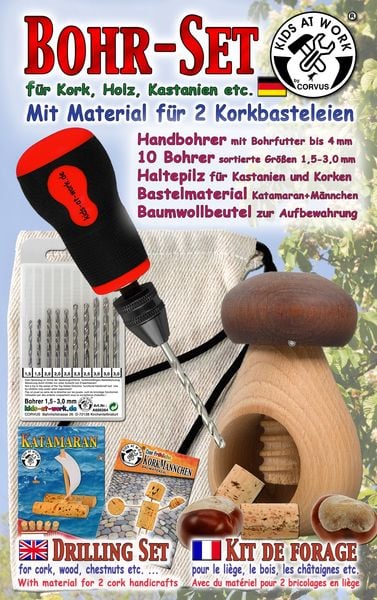 Corvus A600107 - Kids at work, Bohr-Set für Kork, Holz und Kastanien, Bastelset