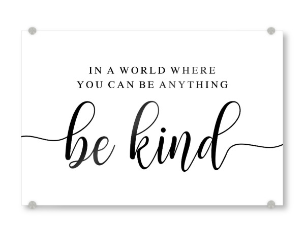 Acrylglasbild "*Be Kind*" artboxONE - Typografie,Schwarzweiß - Bedroom wall decor,Living room decor,Bedroom quotes,Kids room decor,Quote,Kind