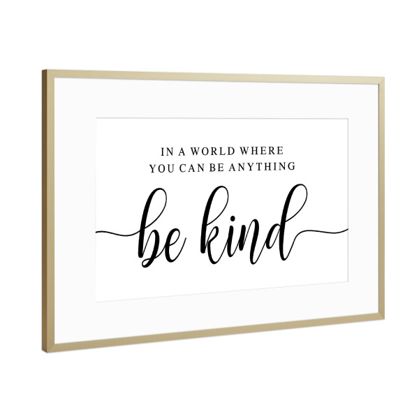 Poster mit Rahmen Gold "*Be Kind*" artboxONE - Typografie,Schwarzweiß - Bedroom wall decor,Living room decor,Bedroom quotes,Kids room decor,Quote,Kind