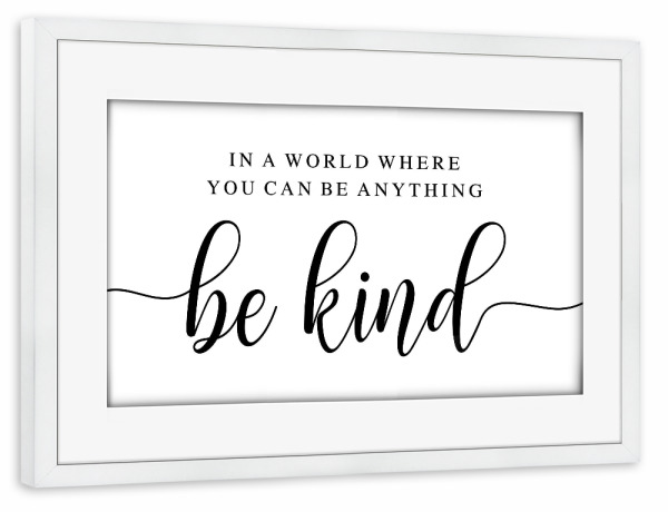 Poster mit Rahmen weiß "*Be Kind*" artboxONE - Typografie,Schwarzweiß - Bedroom wall decor,Living room decor,Bedroom quotes,Kids room decor,Quote,Kind