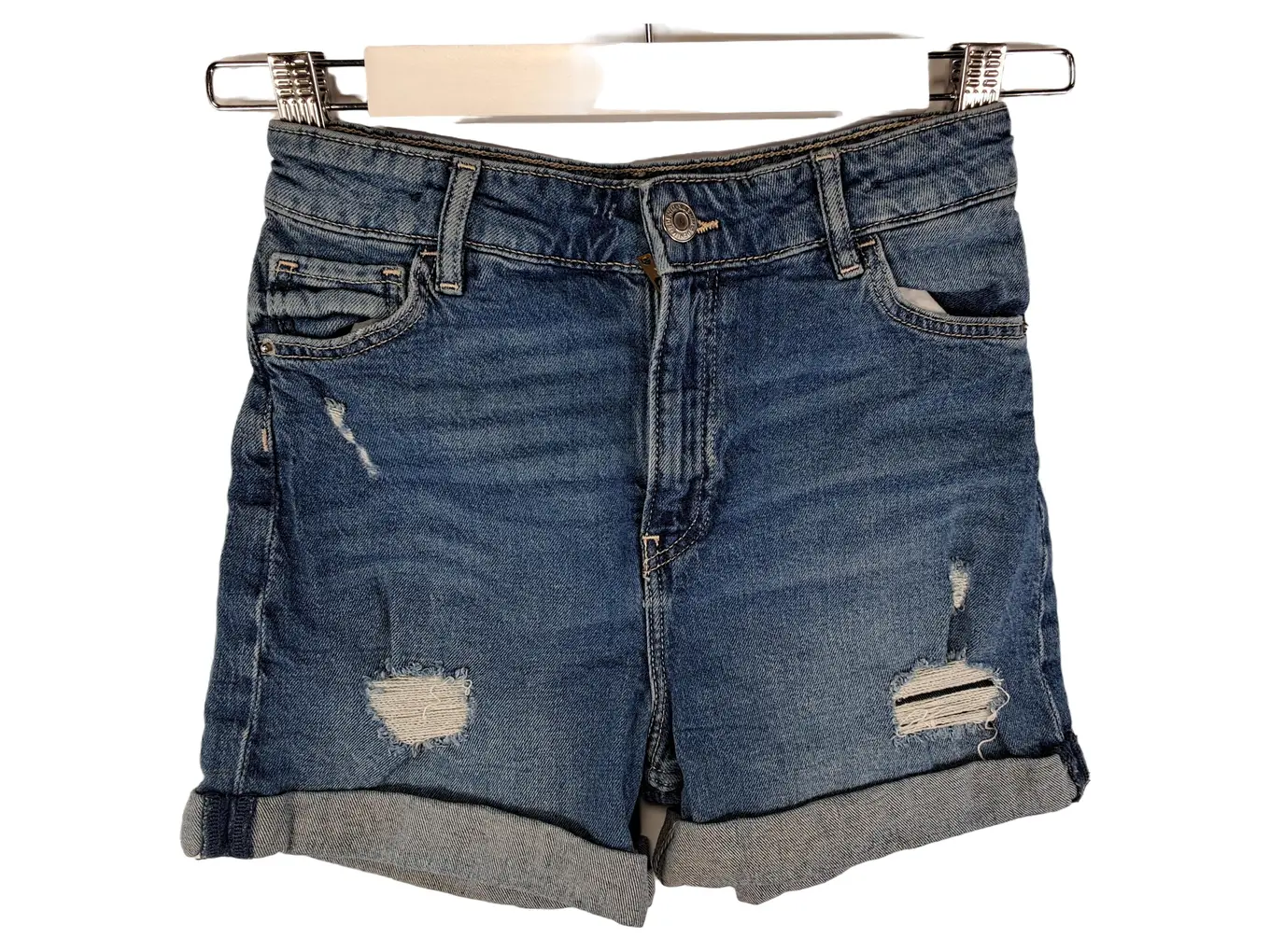 Jeans Shorts Kinder Mädchen Gr. 146 Blau Destroyed Umschlagsaum Denim
