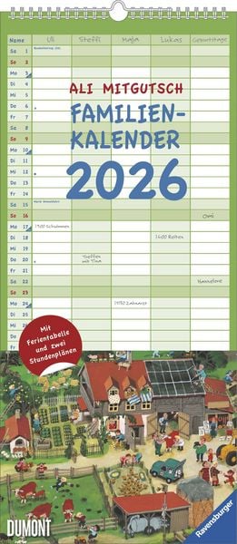DUMONT - Ali Mitgutsch Familienkalender 2026 – Wandkalender 22x50 cm – Familienplaner mit 5 Spalten & Wimmelbildern des Kinderbuchklassikers