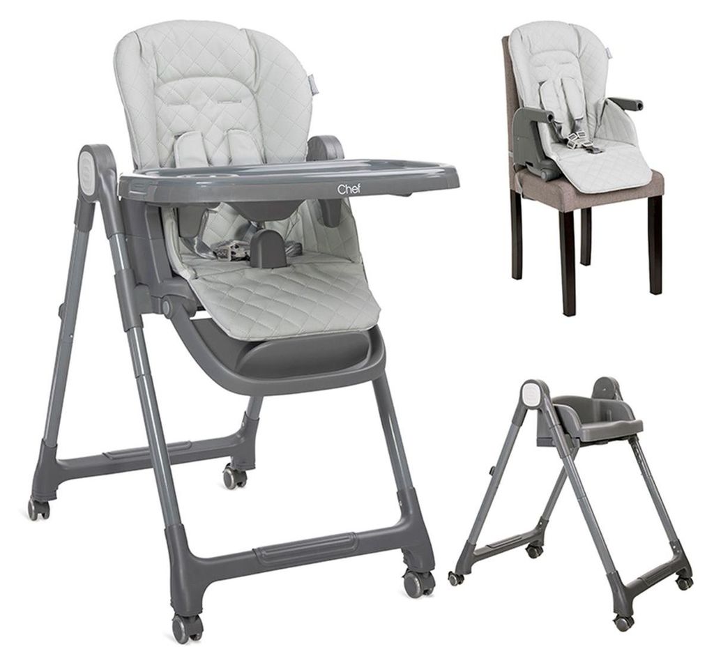 Lorelli Kinderhochstuhl Chef 3 in 1 klappbar Kinderstuhl Booster-Sitz Fußstütze grau