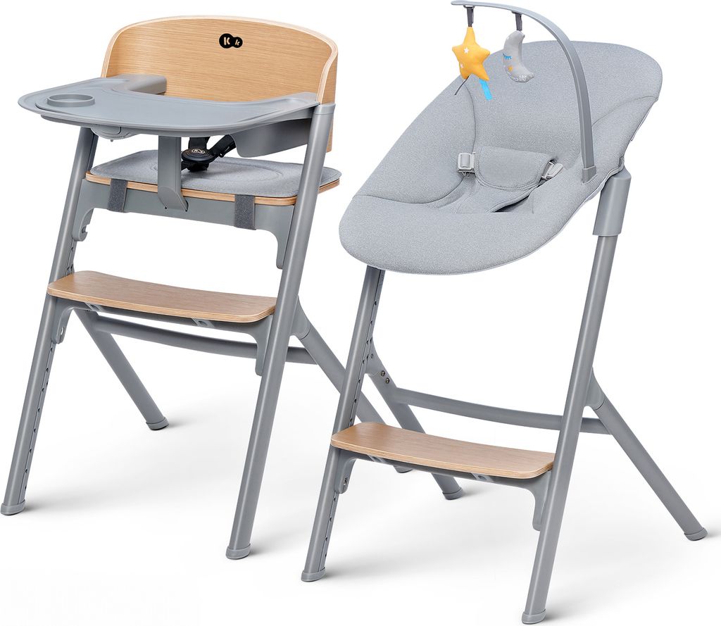 Kinderkraft ENOCK 3-in-1 Kinderhochstuhl - Verstellbar - Ab 6 Monaten bis 10 Jahre - 3-Punkt-Gurt - Abnehmbares Tablett - Holz - Grau