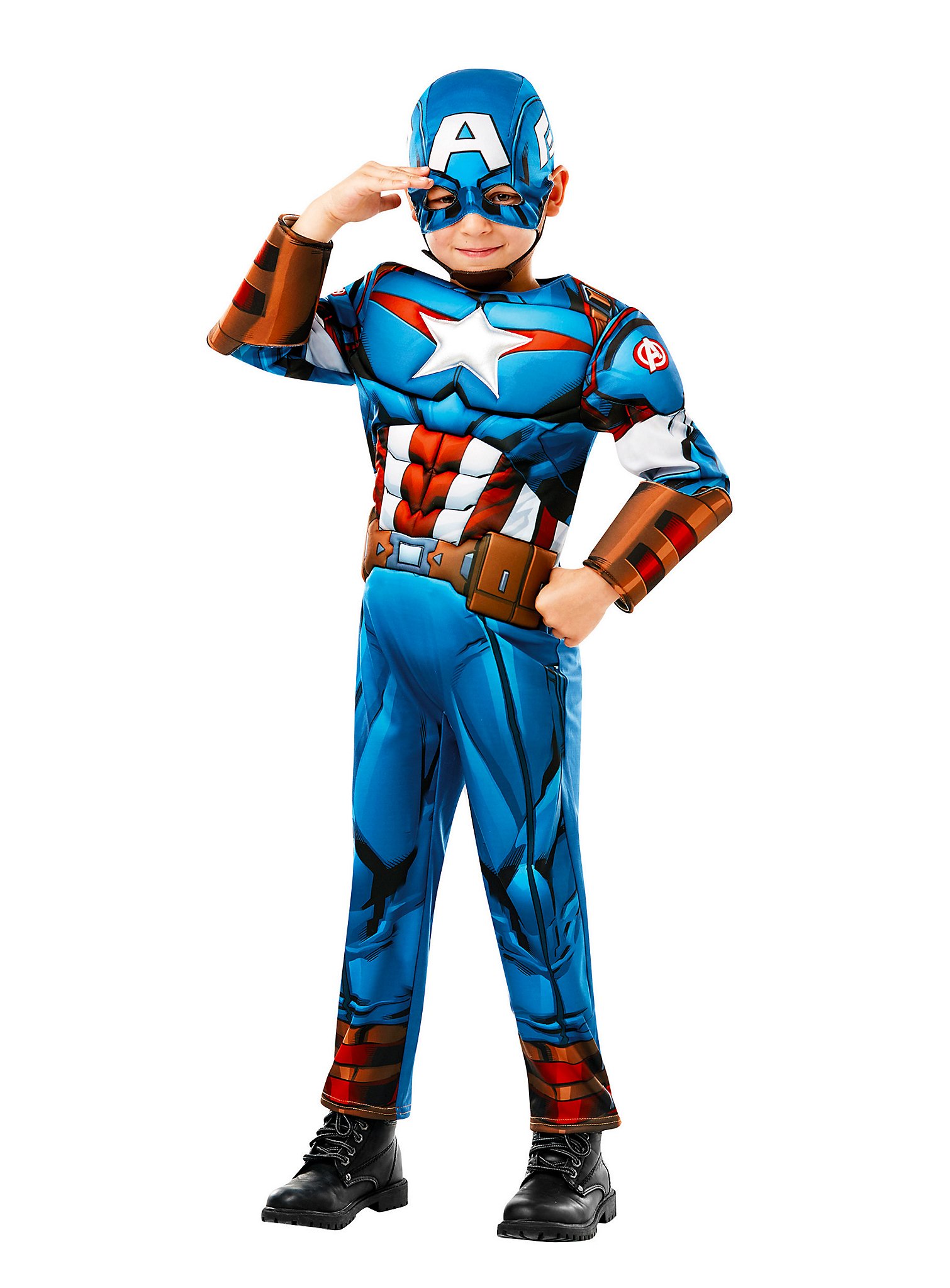 Avengers Assemble Captain America Kinderkostüm | Superhelden Kostüm für Jungen | Größe: 128 | Farbe: Blau