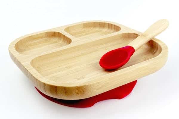 Kinderteller- und Löffelset aus Bambus und Silikon Cap Bambou Bordeauxrot