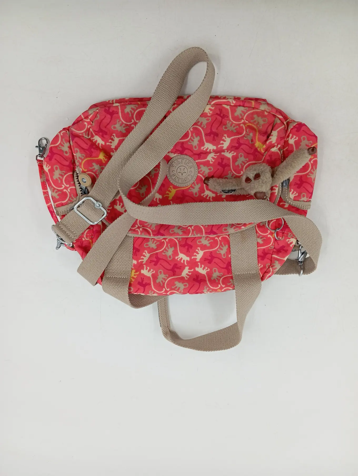 KIPLING Umhängetasche Damen Rosa Affen-Print Crossbody Bag mit Anhänger