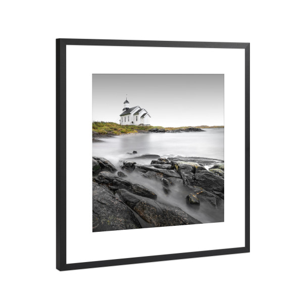 Poster mit Rahmen Schwarz (Metallic) "Gimsoy Kirke | Lofoten" artboxONE - Natur,Reise,Architektur,Reise / Strand und Meer,Reise / Länder
