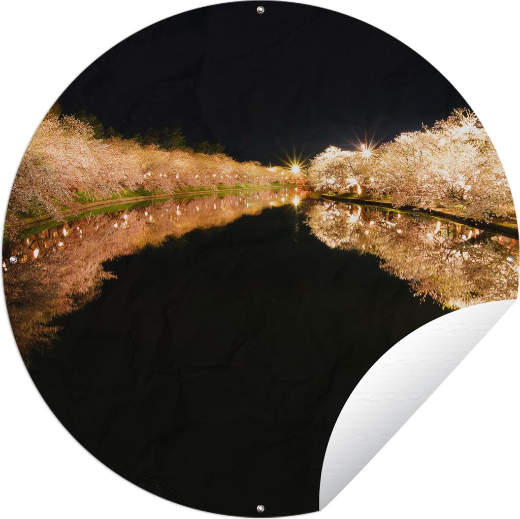 MuchoWow Gartenposter Outdoor-Poster Rund Kirschbaum - Blüte - Licht Ø 60 cm Gartendeko Rundes Poster draußen