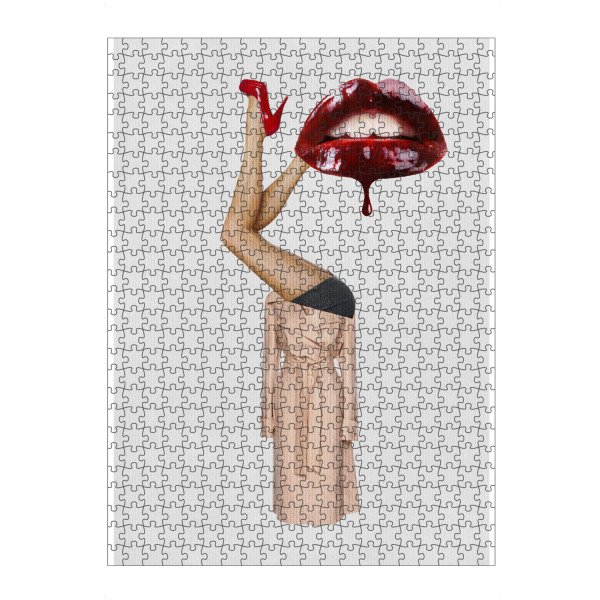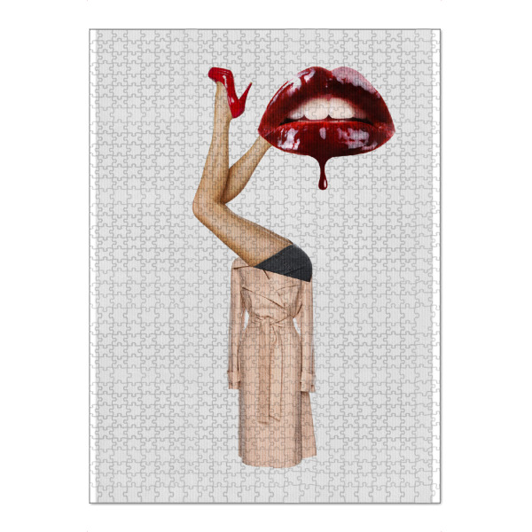artboxONE Puzzle "Kissing Alien" artboxONE - Abstrakt,Menschen,Fashion,Fiktion - Mund,Kuss,Beine,Pumps,Schuhe,Mantel,Frau,Collage,Lippenstift