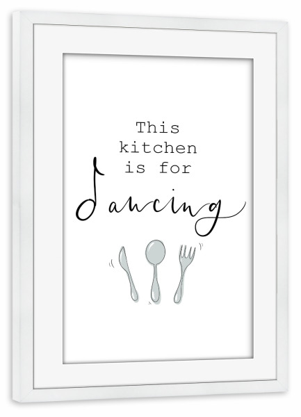 Poster mit Rahmen weiß "This Kitchen is for Dancing Typo" artboxONE - Essen & Trinken