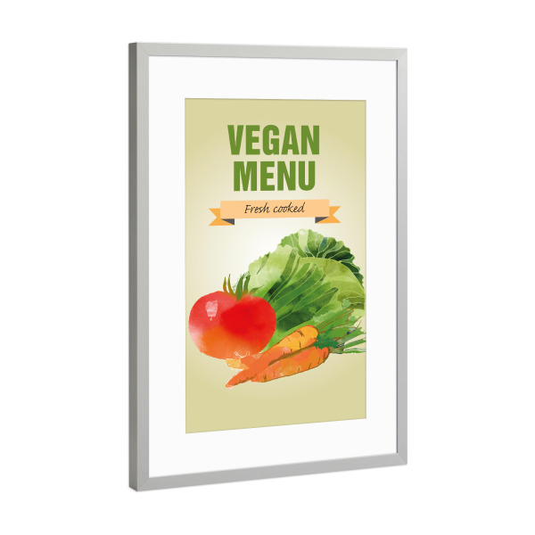 Poster mit Rahmen Silber "Green Menu" artboxONE - Rock the kitchen,Essen & Trinken - Kochen,Vegan,Vegetarier,Menü,Frische,Möhre,Tomate,Salat,Karotte