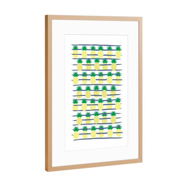 Poster mit Rahmen Kupfer "Ananas Stripes white" artboxONE - Rock the kitchen,Essen & Trinken - Kindermotive,Obst,Pine,Dschungel,Frühstückfrucht