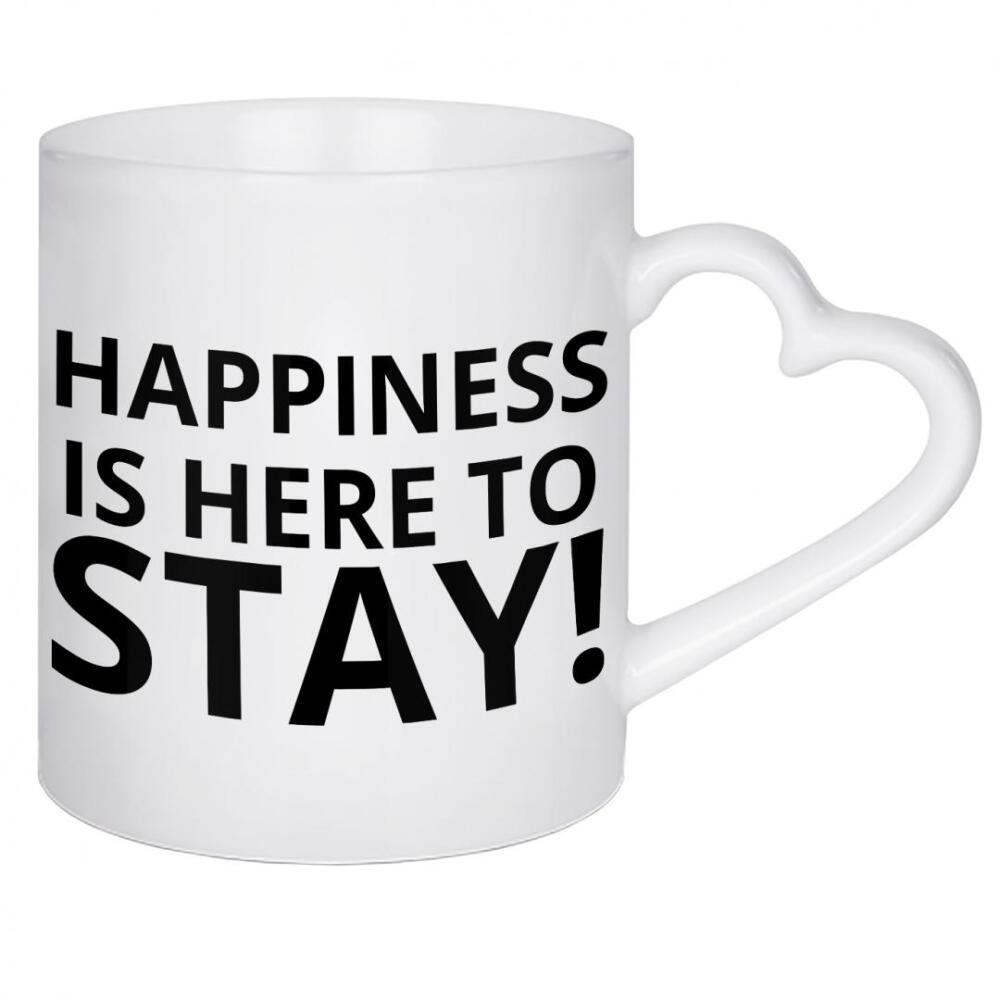 Herztasse "Happiness is here to stay" artboxONE - Typografie - Happiness is here to stay,Happiness,Quotes,Happy,Home decor,Living room,Kitchen