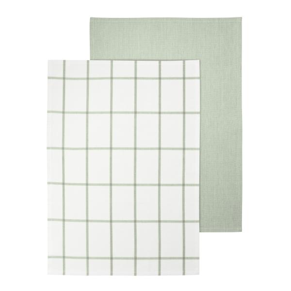 blomus TAULO Set of 2 Tea Towels White/Desert Sage, square pattern, GOTS cotton, absorbent & durable, stylish kitchen textiles