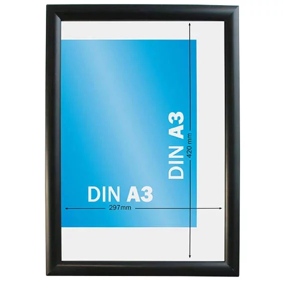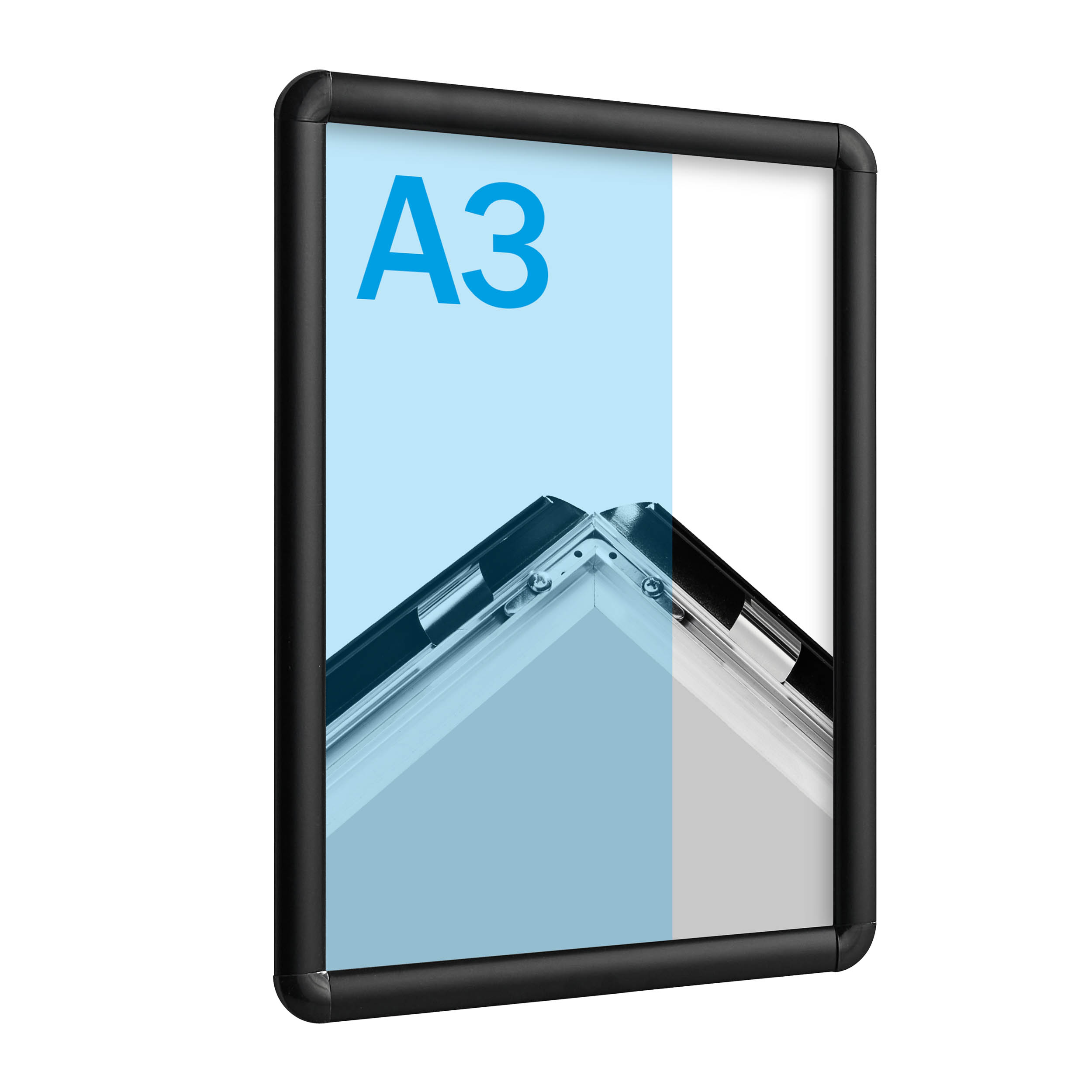 Klapprahmen DIN A3 Schwarz Aluminium – Plakatrahmen 25mm Profil – Wechselrahmen mit UV-Schutzfolie & Antireflex – Snap Frame