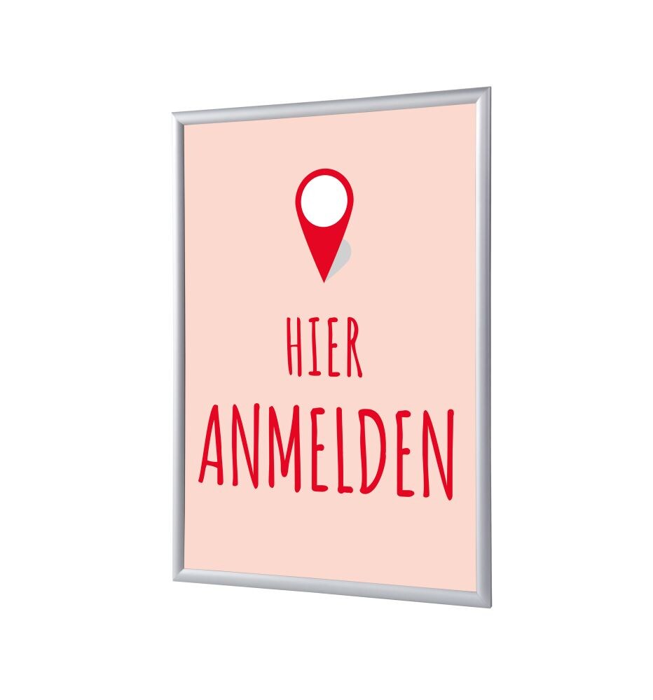 Showdown Displays Klapprahmen 25 mm, Komplettset inkl. Plakat: Hier Anmelden (Deutsch / Englisch) 21x29,7 cm (A4) Grau - Englisch