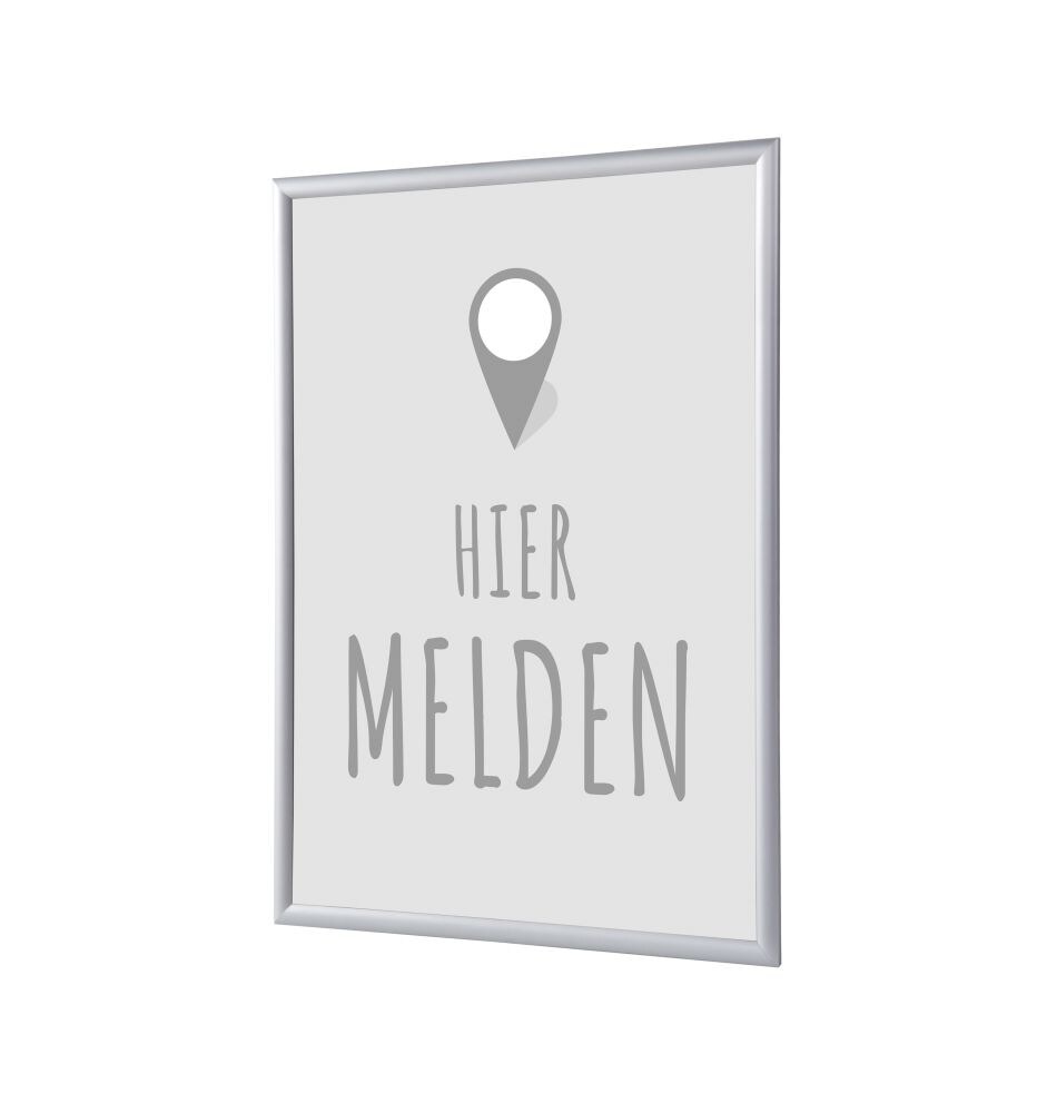 Klapprahmen DIN A4, B1 zertifiziert, 25 mm Rahmenprofil, spitze Ecken, silber