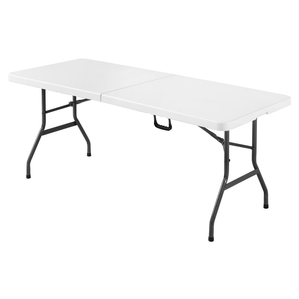 Klapptisch für 4-6 Personen, 180 cm, rechteckig, Kunststoff, mit integriertem Griff, für Garten, Camping, Partys und Picknicks, weiß