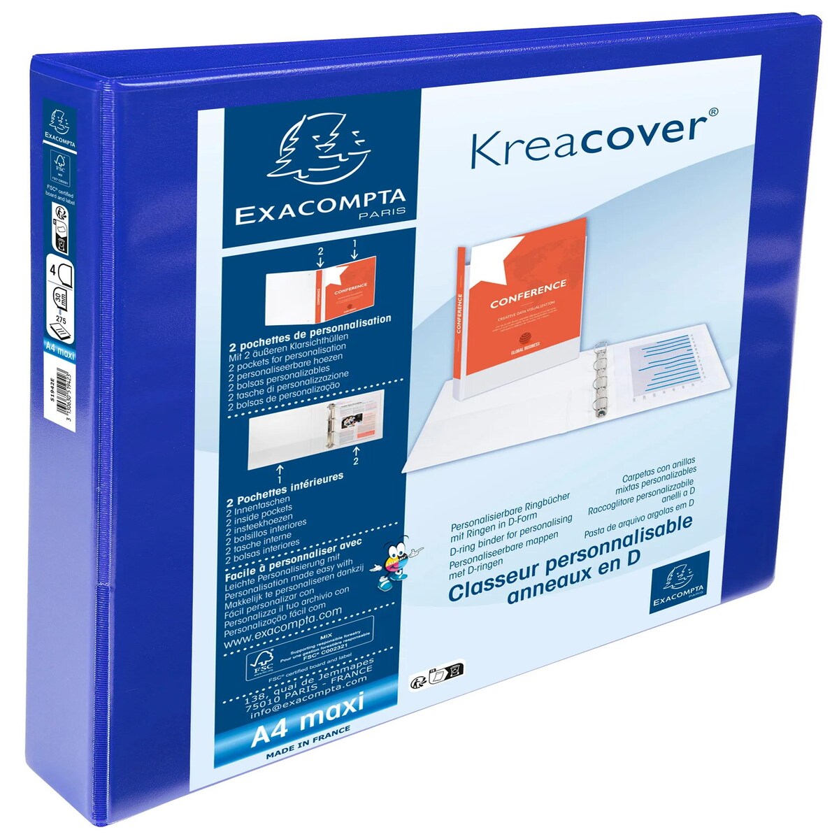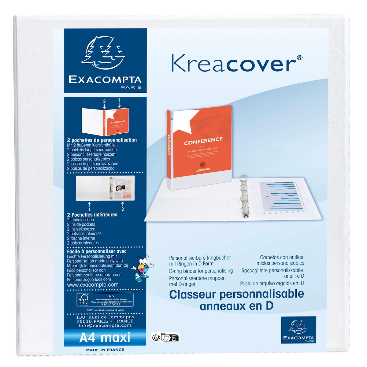 Exacompta Personalisierbares Ringbuch aus PP 2,3mm, 4 Ringe 50mm, Rücken 75mm, 2 äußere Klarsichthüllen, 32x29,5cm für DIN A4 Überbreite - Kreacover